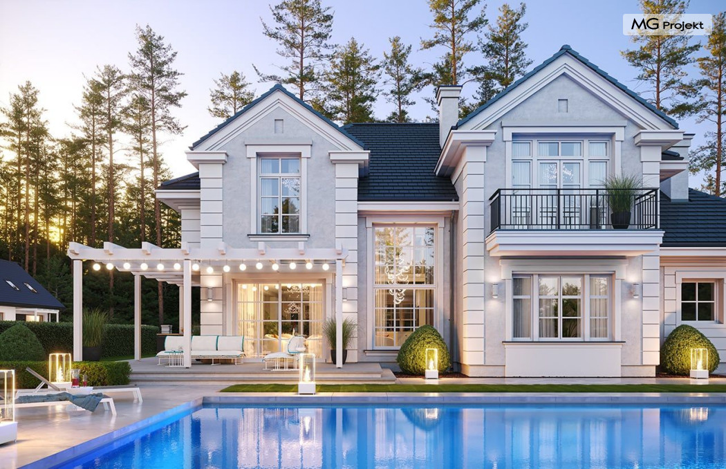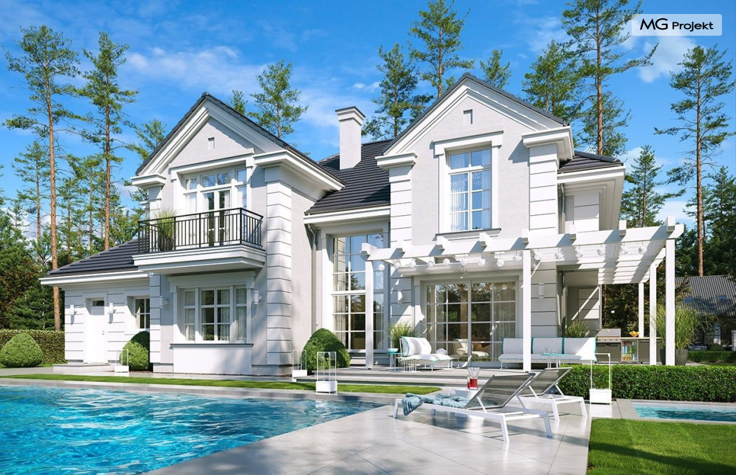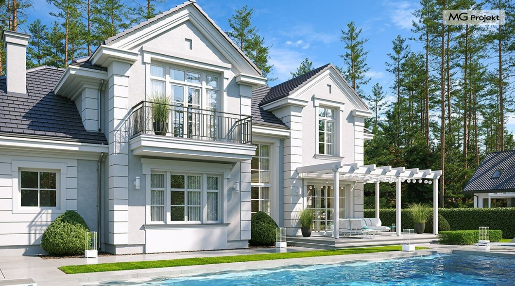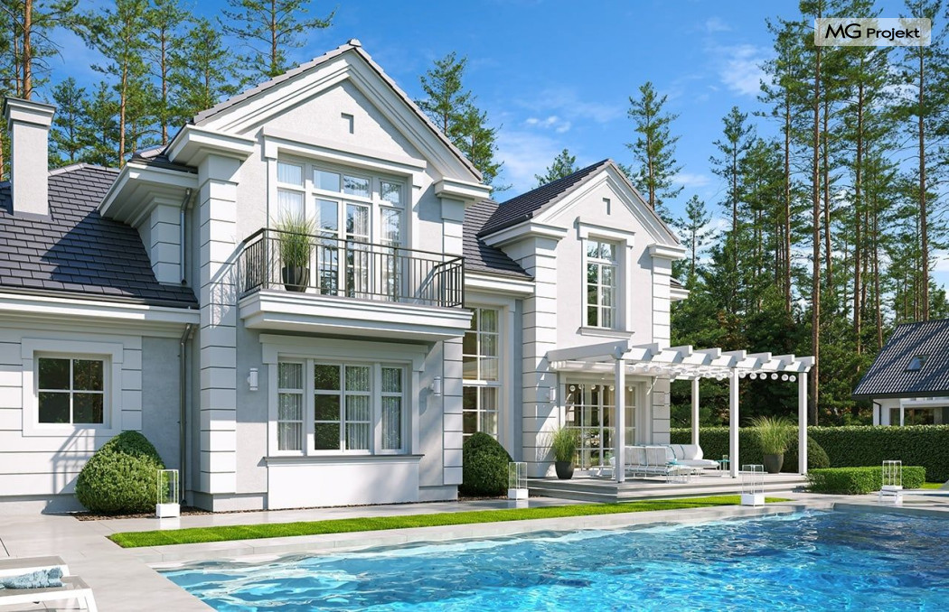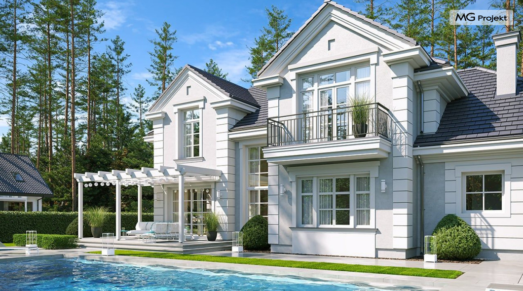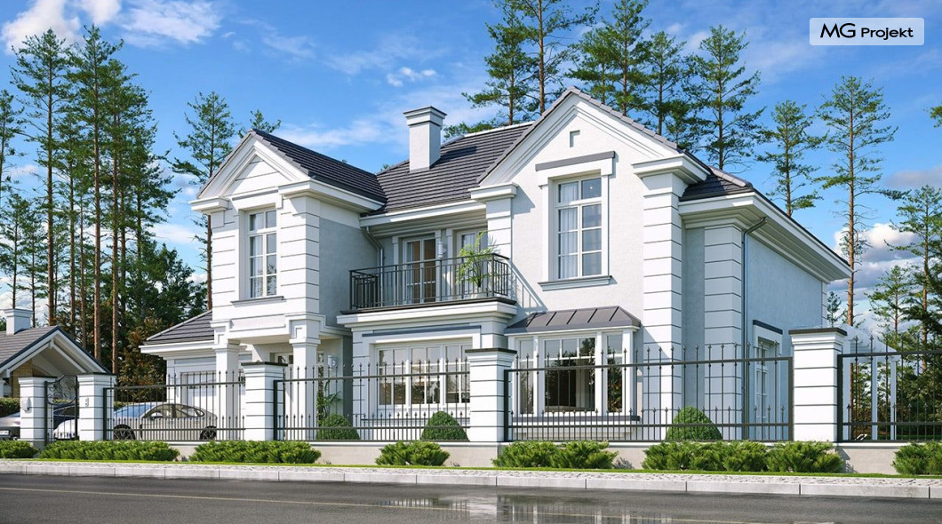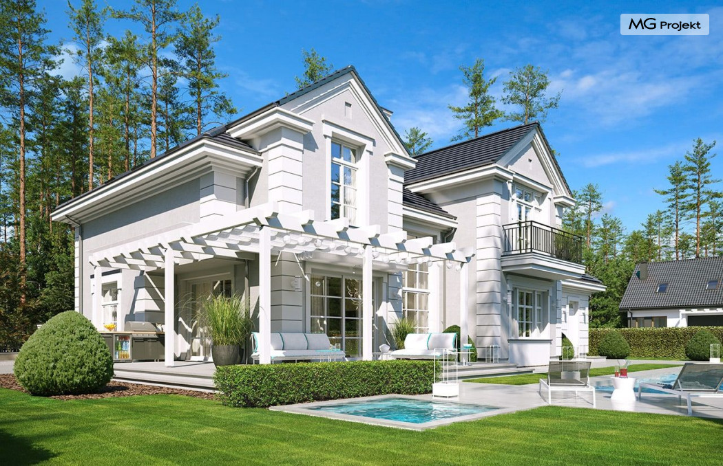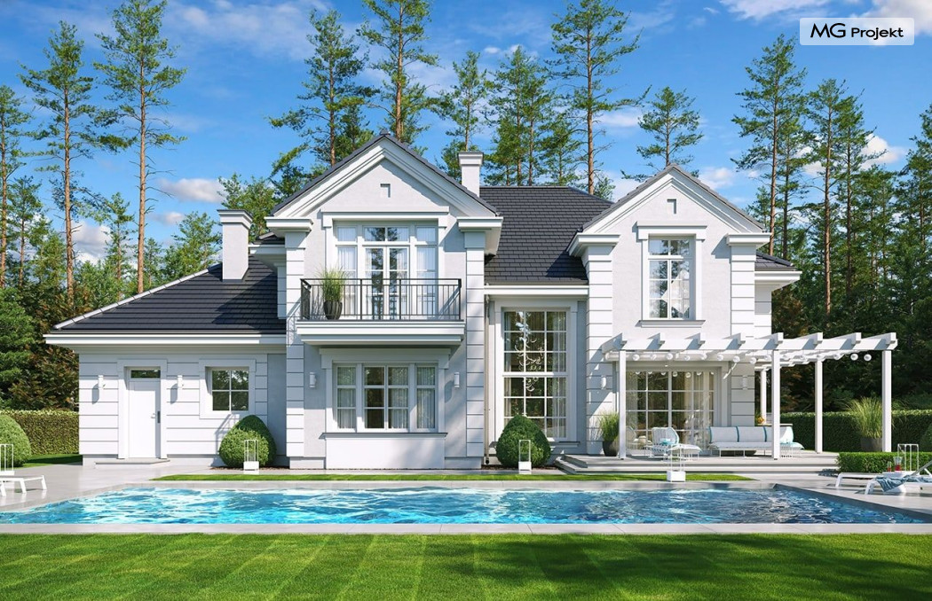 Projekt domu Willa Siedziba 3 to nowa odsłona cieszącego się uznaniem projektu Willa Siedziba. Nowy wariant to zmniejszony o 50 m2 dom, ze zwężoną o 5 metrów szerokością bryły, dzięki czemu budynek zmieści się na węższej 26-metrowej działce. Willa Siedziba 3 to reprezentacyjna miejska willa, nawiązująca swoją formą i stylistyką do wczesno dwudziestowiecznych rezydencji, jakie możemy spotkać do dziś w prestiżowych willowych dzielnicach większych miast. Dom ma powierzchnię użytkową wynoszącą ca 240 m2 i jest przeznaczony dla 4-6cioosobowej rodziny. Bryłę budynku zaprojektowano na prostokątnym planie i składa się z dwóch części - wyżej mieszkalnej, przykrytej czterospadowym dachem, oraz niższej bryły garażu. Dach budynku został osadzony na wysokości umożliwiającej interpretację tego budynku jako dom z poddaszem użytkowym. Główna bryła urozmaicona została czterema masywnymi lukarnami, skrywającymi w swojej szerokości pokoje górnej kondygnacji. Od strony elewacji fontowej willi mamy reprezentacyjne wejście z szerokimi drzwiami z naświetlami. Następnie dwa wykusze - kuchenny i jadalni - oba o innej formie, ale harmonizujące ze sobą. Dalej balkon z ozdobną balustradą, dostępny z holu-saloniku piętra, oraz wspomniane dwie lukarny pokoi piętra spinające całą kompozycję bryły. Trochę wycofany garaż nie narzuca się i pozwala znaleźć miejsce na swobodne parkowanie aut przed drzwiami garażowymi. Strona ogrodowa to jeszcze bardziej urozmaicona fasada. Mamy tutaj wystające lukarny pięter, między nimi dwupiętrowe okno salonu, balkon sypialni master, oraz przepiękną pergolę przykrywającą częściowo taras. Wnętrze domu na parterze to przede wszystkim duża przestrzeń dzienna połączonych pomieszczeń salonu, kuchni i jadalni, tworząca razem ponad 80-metrową powierzchnię. Dodatkowym urozmaiceniem jest tutaj otwarcie przestrzenne - pustka nad salonem, połączona z antresolą piętra, gdzie znajduje się hol-salonik. Do domu wchodzimy przez wygodny przedsionek z szatnią, do holu z reprezentacyjnymi schodami, a dalej do przestrzeni dziennej. Dodatkowe pomieszczenia na parterze to oczywiście duży garaż z pomieszczeniem technicznym, oraz oddzielony akustycznie gabinet. Na piętrze zaprojektowano 4 pokoje sypialne, w tym apartament master z oddzielną łazienką i garderobami. Willa Siedziba 3 została zaprojektowana jako dom energooszczędny, z dobrej jakości materiałów, z dobrą izolacją termiczną i z nowoczesnymi instalacjami. Budynek mimo skomplikowanej formy wykonano w tradycyjnej technologii, z rozwiązaniami spotykanymi na każdej budowie. Budowa budynku nie powinna być problematyczna dla fachowego wykonawcy. Willa Siedziba 3 to propozycja dla Inwestorów marzących o budowie prawdziwego pełnokrwistego domu o odpowiedniej skali, dającego przestrzeń do komfortowego życia, marzących o realizacji projektu nietuzinkowego o ponadczasowej stylistyce. Zapraszamy !