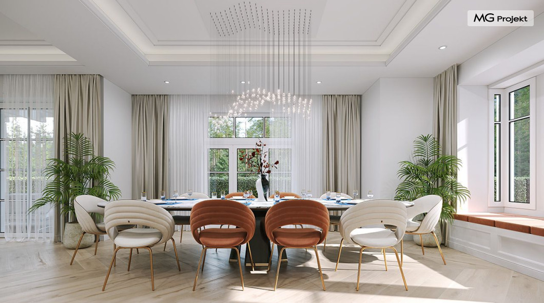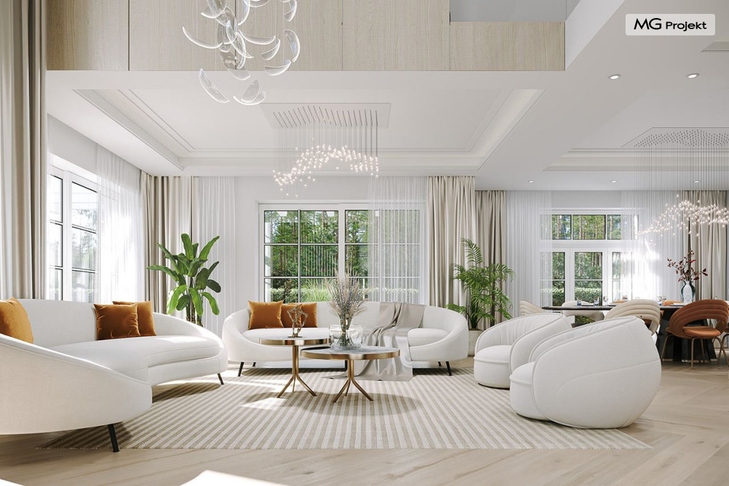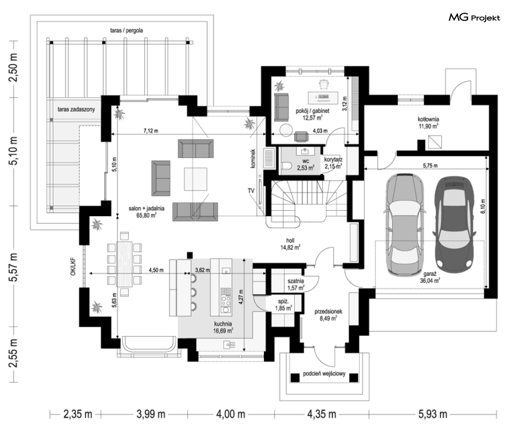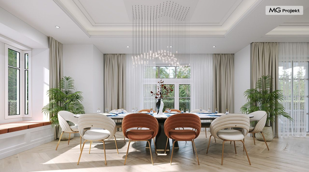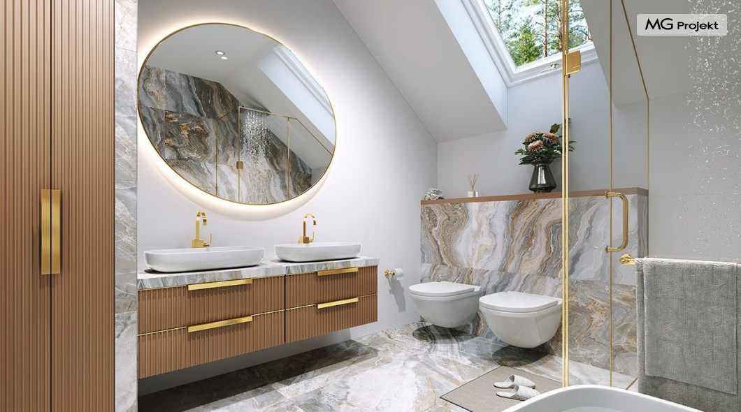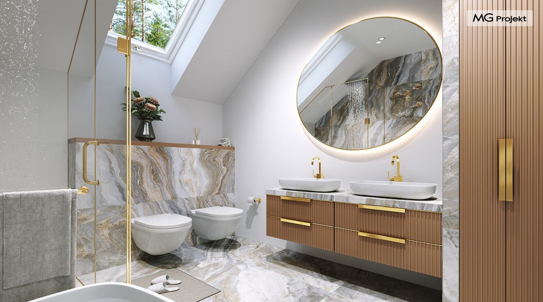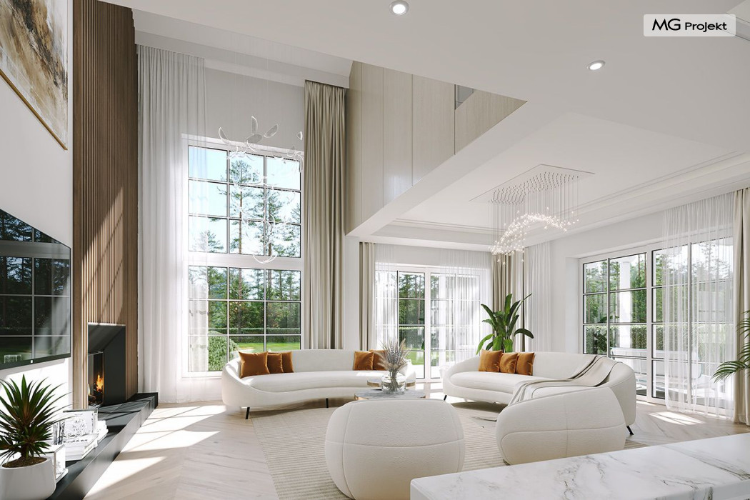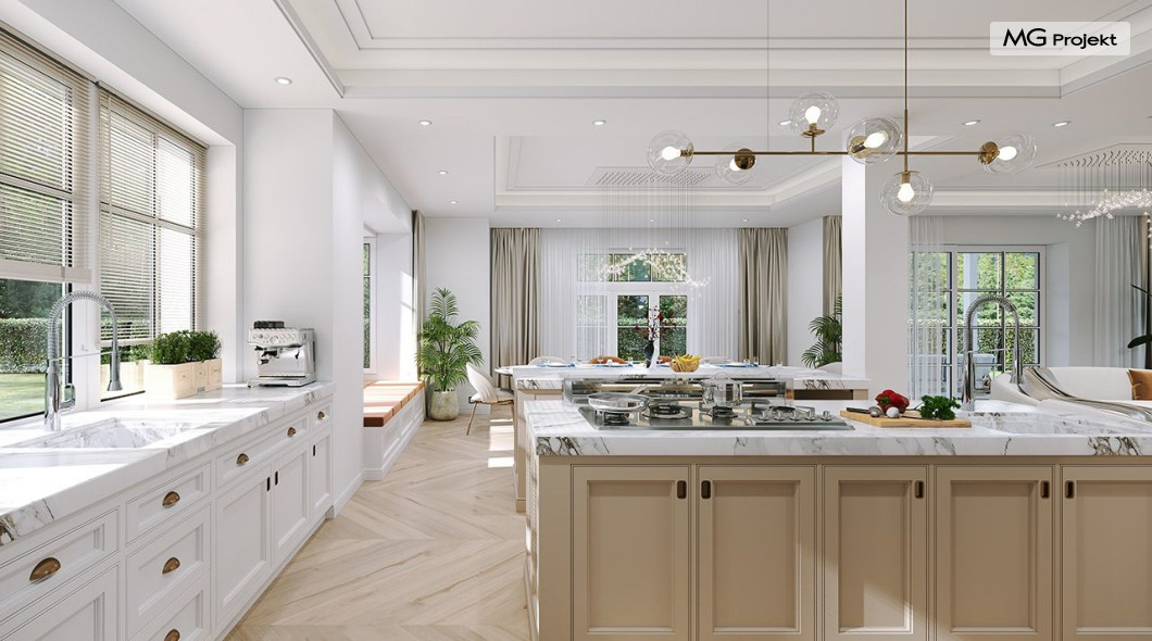 Projekt domu Willa Siedziba 3 to nowa odsłona cieszącego się uznaniem projektu Willa Siedziba. Nowy wariant to zmniejszony o 50 m2 dom, ze zwężoną o 5 metrów szerokością bryły, dzięki czemu budynek zmieści się na węższej 26-metrowej działce. Willa Siedziba 3 to reprezentacyjna miejska willa, nawiązująca swoją formą i stylistyką do wczesno dwudziestowiecznych rezydencji, jakie możemy spotkać do dziś w prestiżowych willowych dzielnicach większych miast. Dom ma powierzchnię użytkową wynoszącą ca 240 m2 i jest przeznaczony dla 4-6cioosobowej rodziny. Bryłę budynku zaprojektowano na prostokątnym planie i składa się z dwóch części - wyżej mieszkalnej, przykrytej czterospadowym dachem, oraz niższej bryły garażu. Dach budynku został osadzony na wysokości umożliwiającej interpretację tego budynku jako dom z poddaszem użytkowym. Główna bryła urozmaicona została czterema masywnymi lukarnami, skrywającymi w swojej szerokości pokoje górnej kondygnacji. Od strony elewacji fontowej willi mamy reprezentacyjne wejście z szerokimi drzwiami z naświetlami. Następnie dwa wykusze - kuchenny i jadalni - oba o innej formie, ale harmonizujące ze sobą. Dalej balkon z ozdobną balustradą, dostępny z holu-saloniku piętra, oraz wspomniane dwie lukarny pokoi piętra spinające całą kompozycję bryły. Trochę wycofany garaż nie narzuca się i pozwala znaleźć miejsce na swobodne parkowanie aut przed drzwiami garażowymi. Strona ogrodowa to jeszcze bardziej urozmaicona fasada. Mamy tutaj wystające lukarny pięter, między nimi dwupiętrowe okno salonu, balkon sypialni master, oraz przepiękną pergolę przykrywającą częściowo taras. Wnętrze domu na parterze to przede wszystkim duża przestrzeń dzienna połączonych pomieszczeń salonu, kuchni i jadalni, tworząca razem ponad 80-metrową powierzchnię. Dodatkowym urozmaiceniem jest tutaj otwarcie przestrzenne - pustka nad salonem, połączona z antresolą piętra, gdzie znajduje się hol-salonik. Do domu wchodzimy przez wygodny przedsionek z szatnią, do holu z reprezentacyjnymi schodami, a dalej do przestrzeni dziennej. Dodatkowe pomieszczenia na parterze to oczywiście duży garaż z pomieszczeniem technicznym, oraz oddzielony akustycznie gabinet. Na piętrze zaprojektowano 4 pokoje sypialne, w tym apartament master z oddzielną łazienką i garderobami. Willa Siedziba 3 została zaprojektowana jako dom energooszczędny, z dobrej jakości materiałów, z dobrą izolacją termiczną i z nowoczesnymi instalacjami. Budynek mimo skomplikowanej formy wykonano w tradycyjnej technologii, z rozwiązaniami spotykanymi na każdej budowie. Budowa budynku nie powinna być problematyczna dla fachowego wykonawcy. Willa Siedziba 3 to propozycja dla Inwestorów marzących o budowie prawdziwego pełnokrwistego domu o odpowiedniej skali, dającego przestrzeń do komfortowego życia, marzących o realizacji projektu nietuzinkowego o ponadczasowej stylistyce. Zapraszamy !