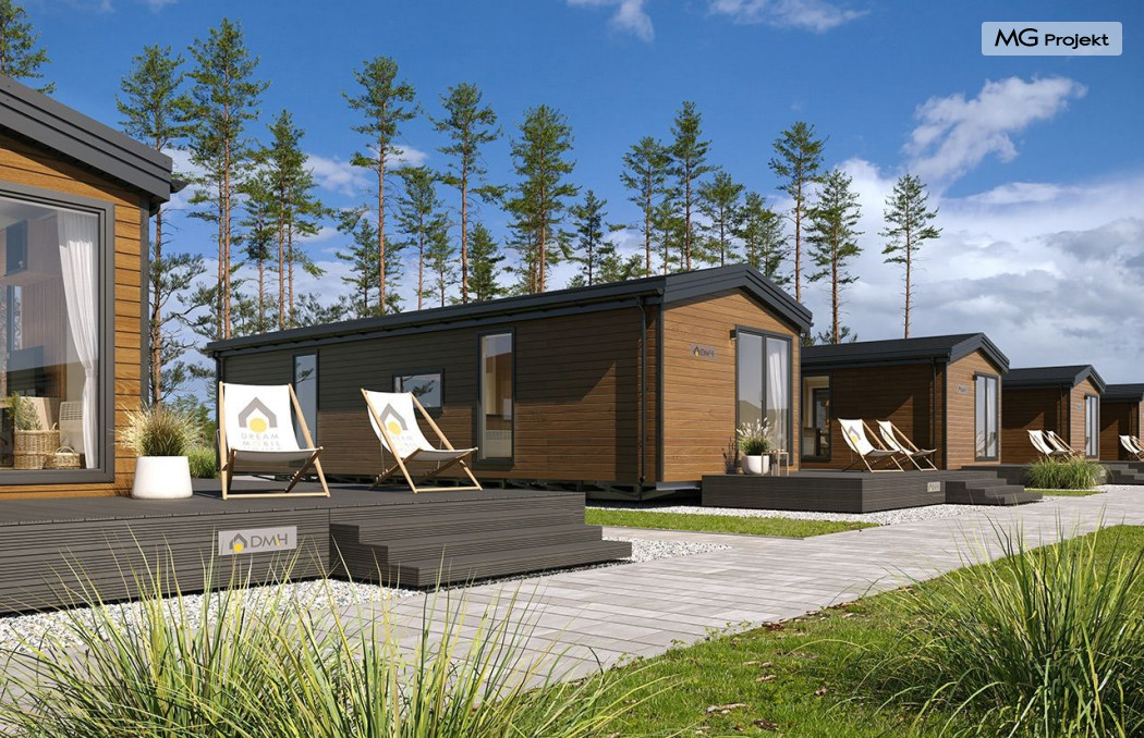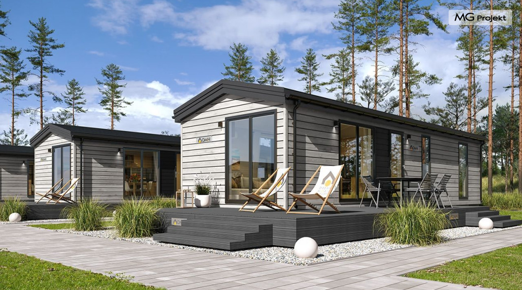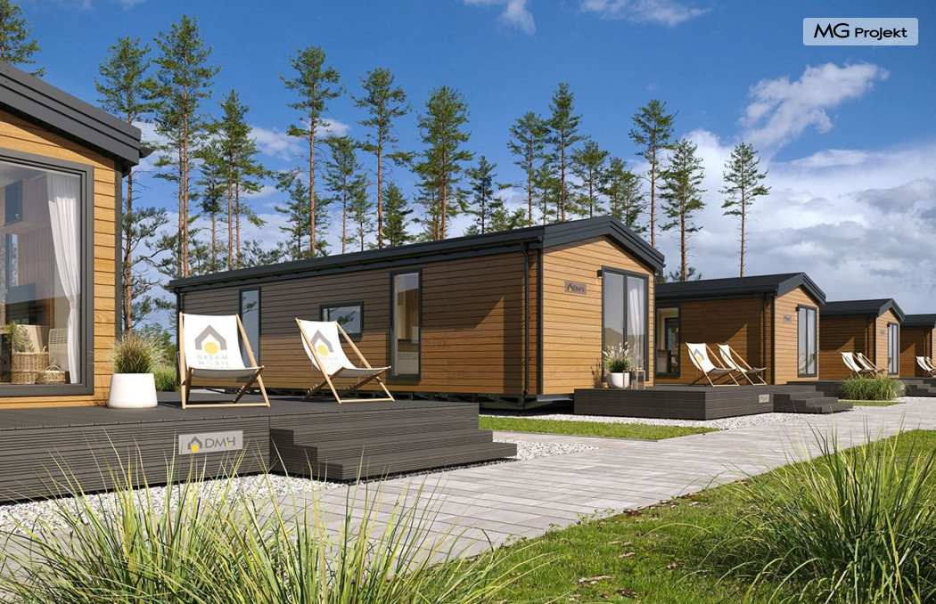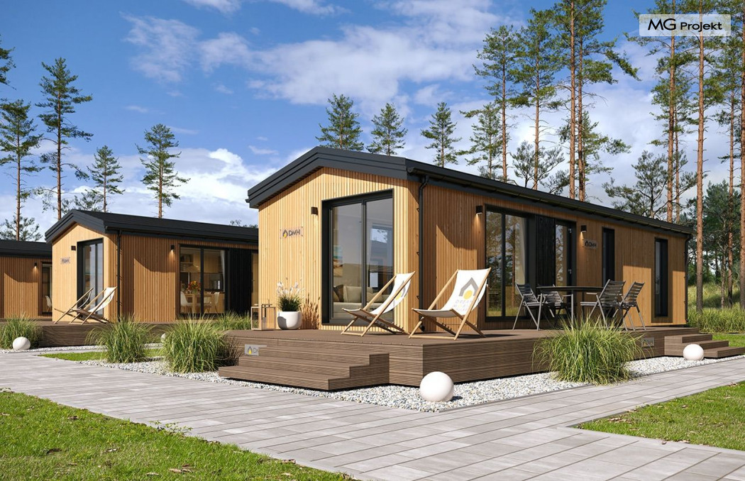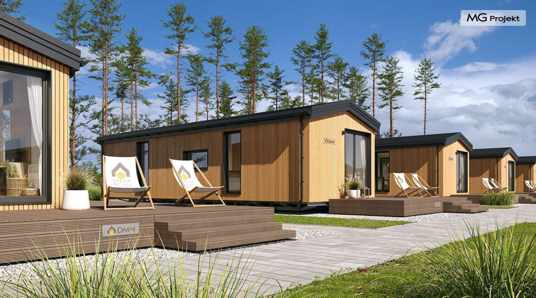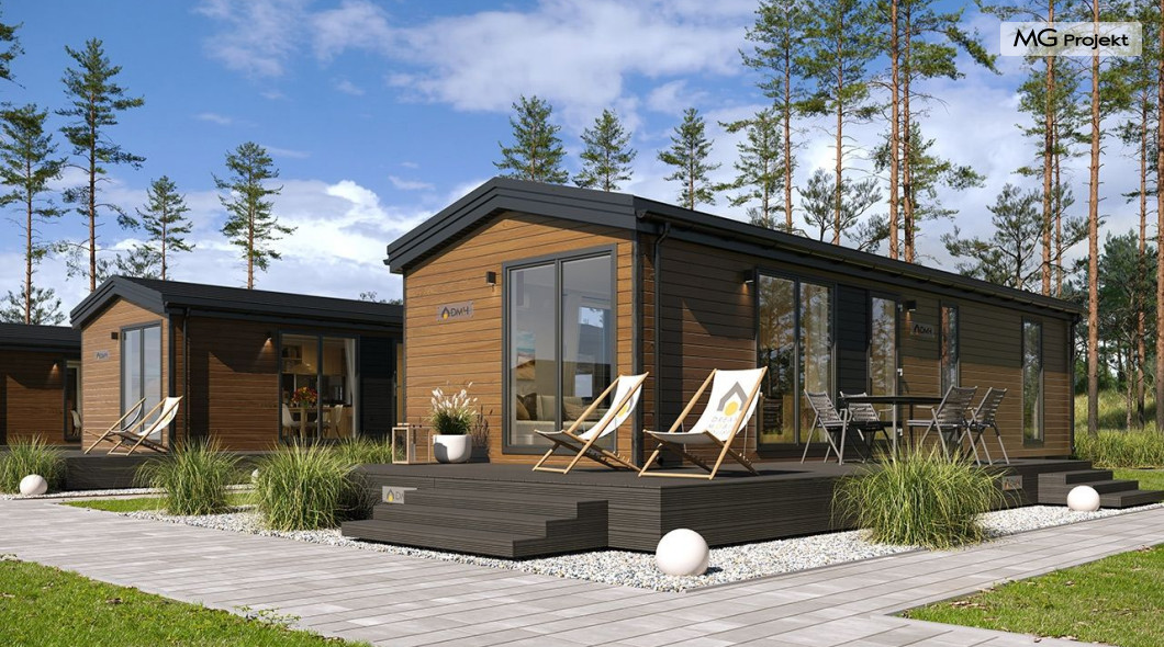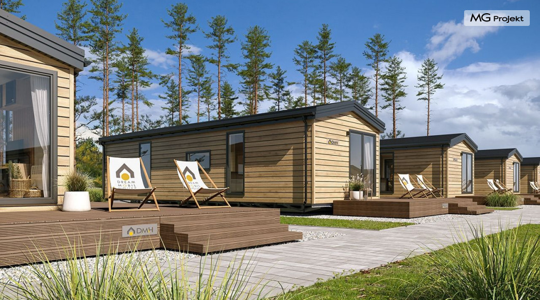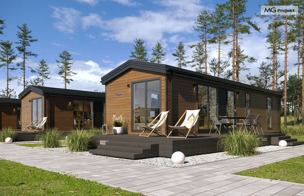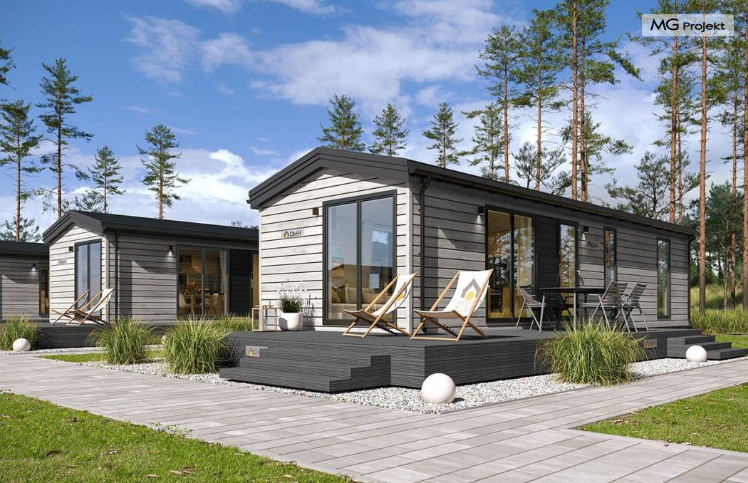 Dom mobilny A o wymiarach zewnętrznych: 12 x 4 m, oraz mniejszym 10,5 x 4 m, występuje w wielu wariantach funkcjonalnych wnętrza oraz wygląd zewnętrzny dostosowany do wymagań klienta