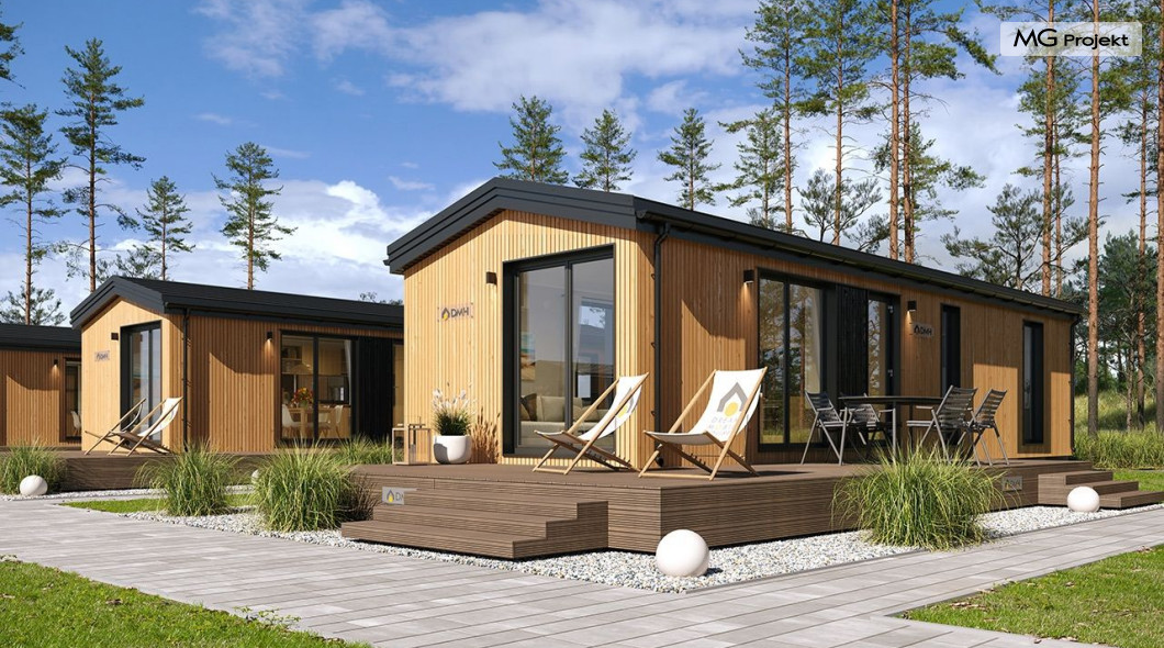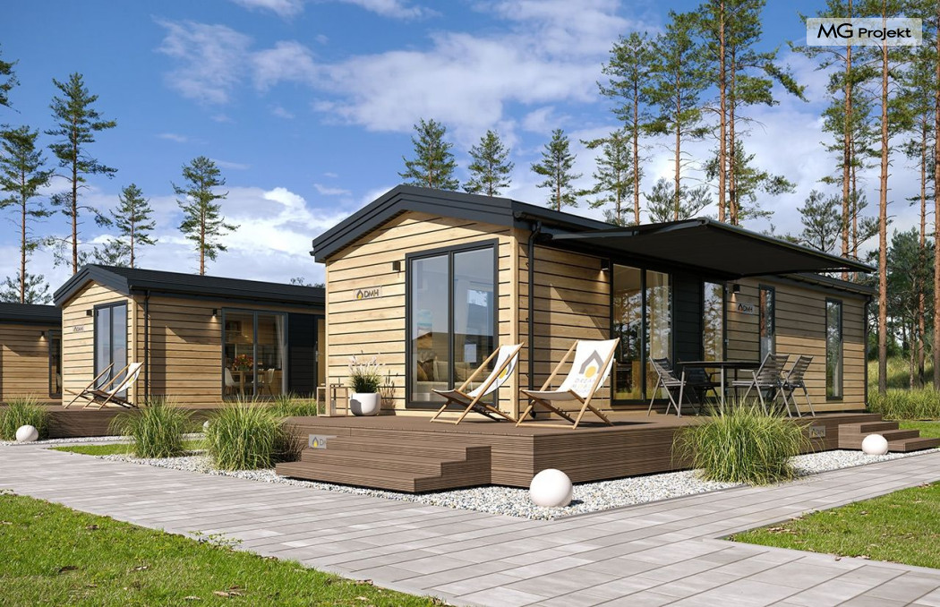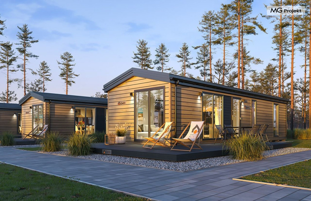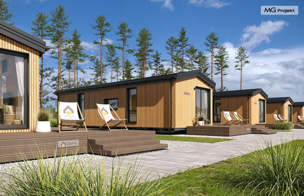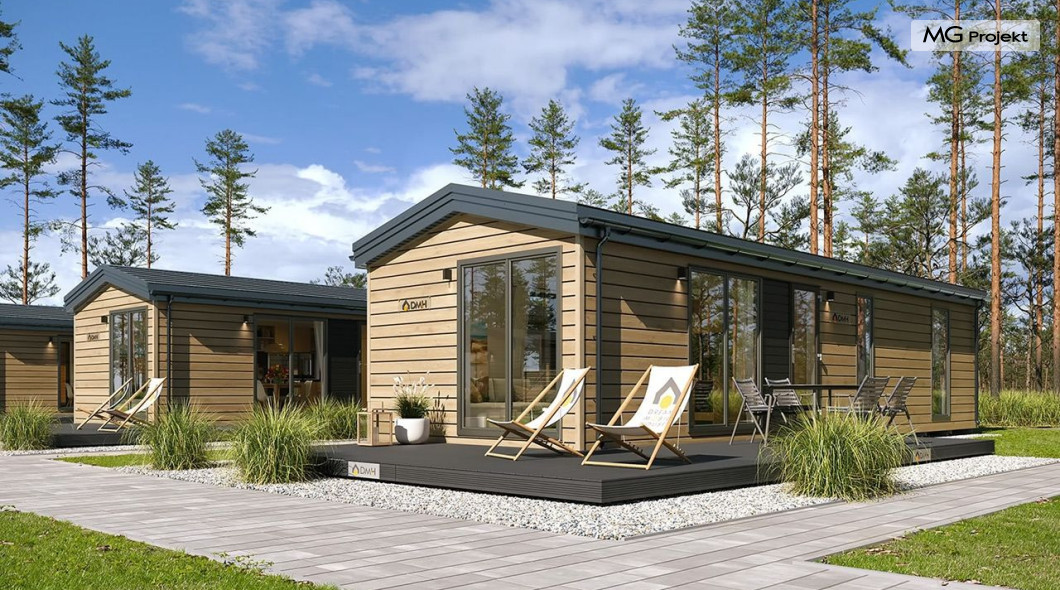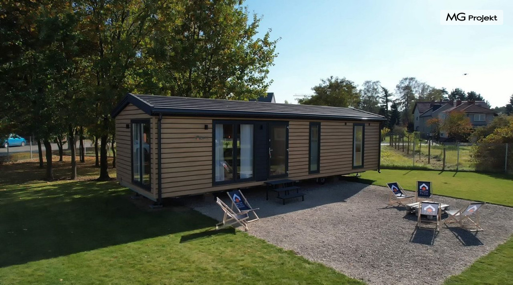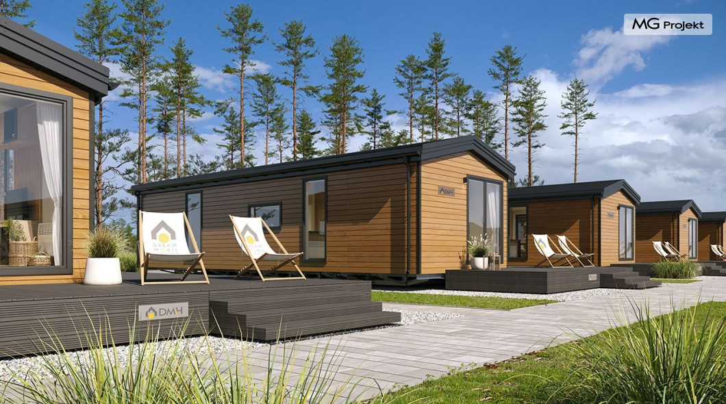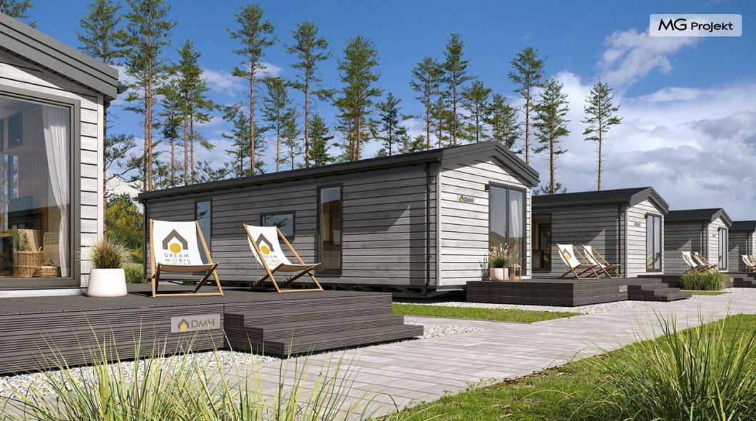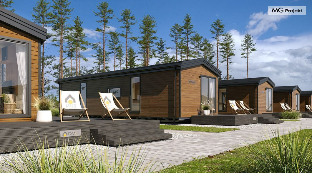 Dom mobilny A o wymiarach zewnętrznych: 12 x 4 m, oraz mniejszym 10,5 x 4 m, występuje w wielu wariantach funkcjonalnych wnętrza oraz wygląd zewnętrzny dostosowany do wymagań klienta