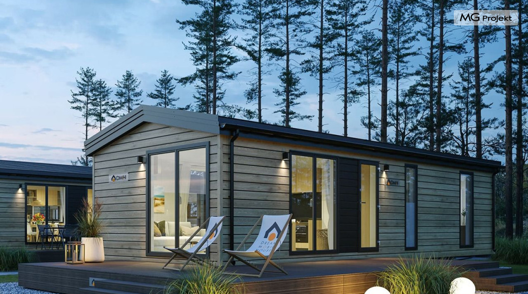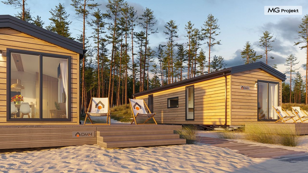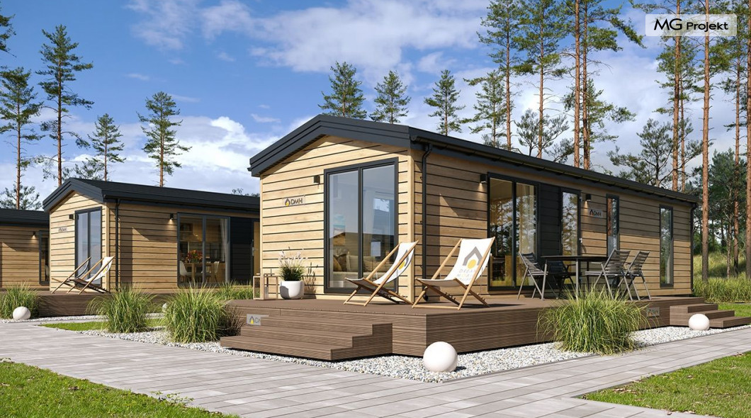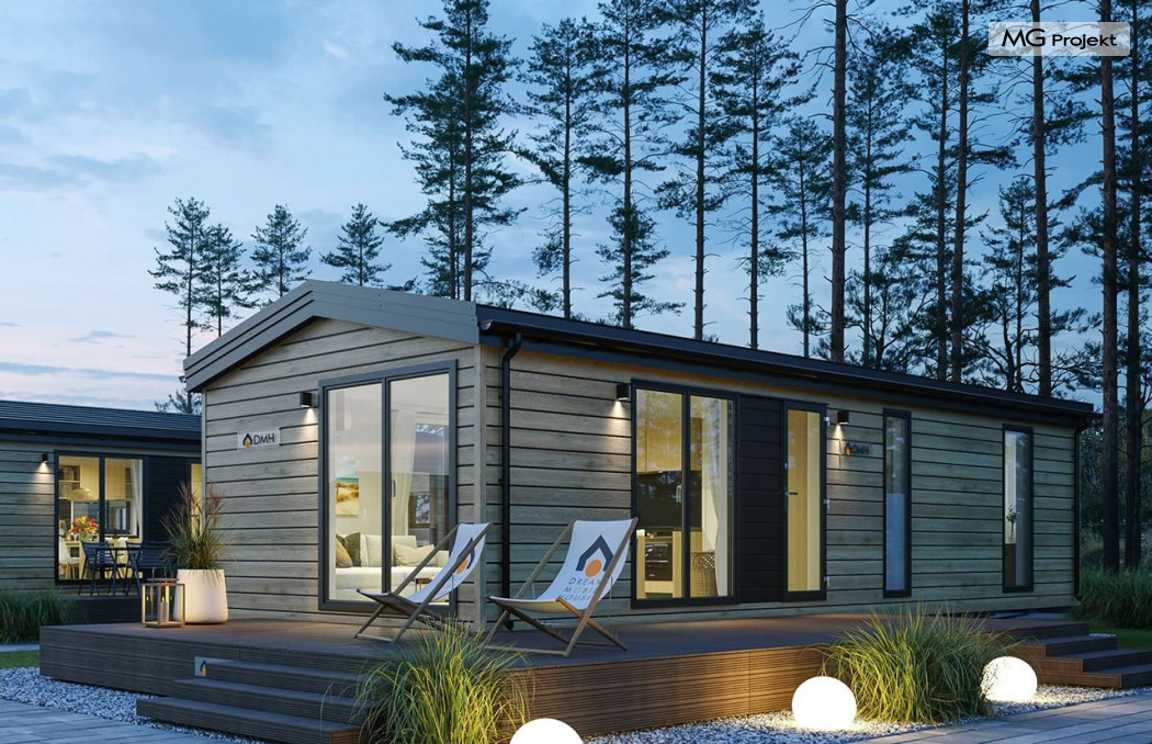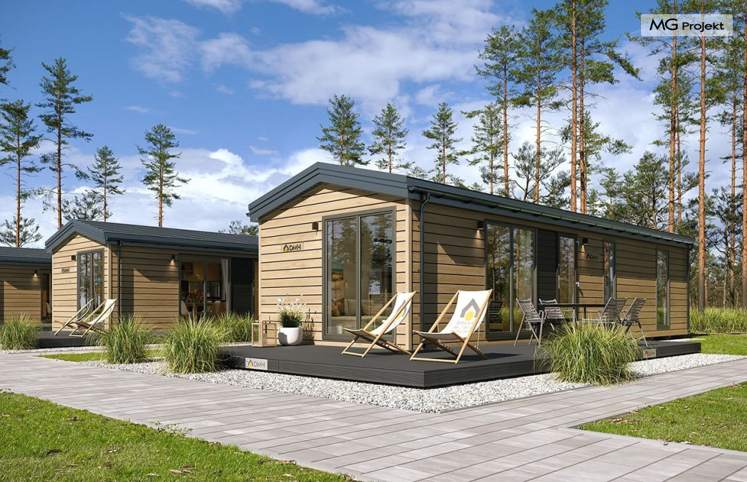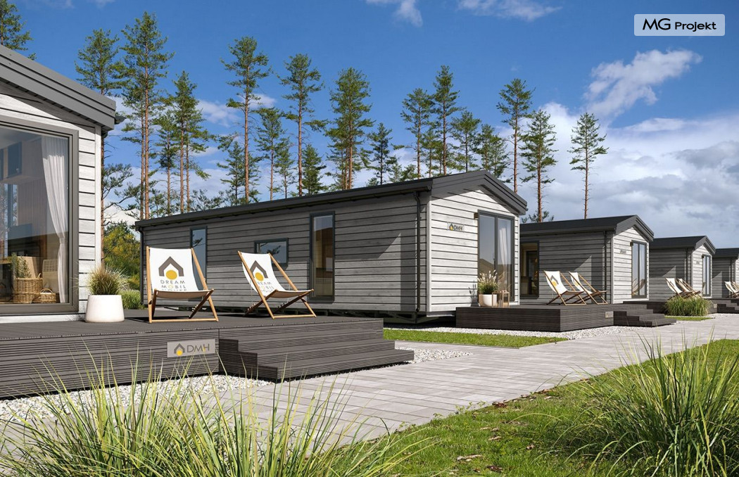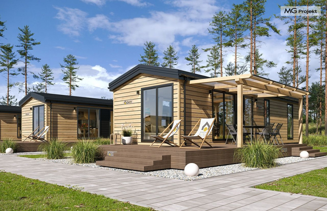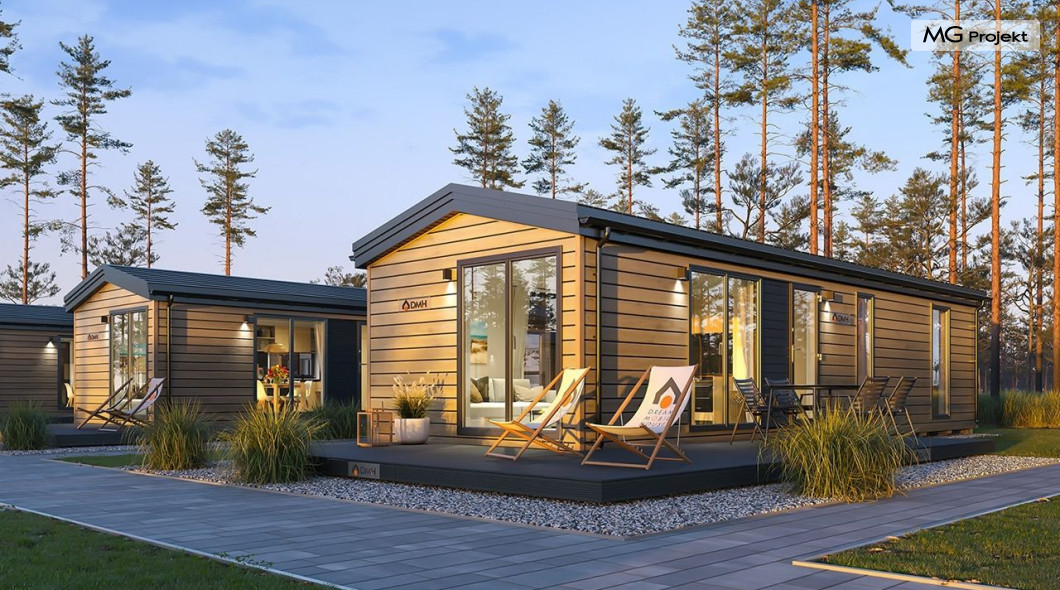 Dom mobilny A o wymiarach zewnętrznych: 12 x 4 m, oraz mniejszym 10,5 x 4 m, występuje w wielu wariantach funkcjonalnych wnętrza oraz wygląd zewnętrzny dostosowany do wymagań klienta