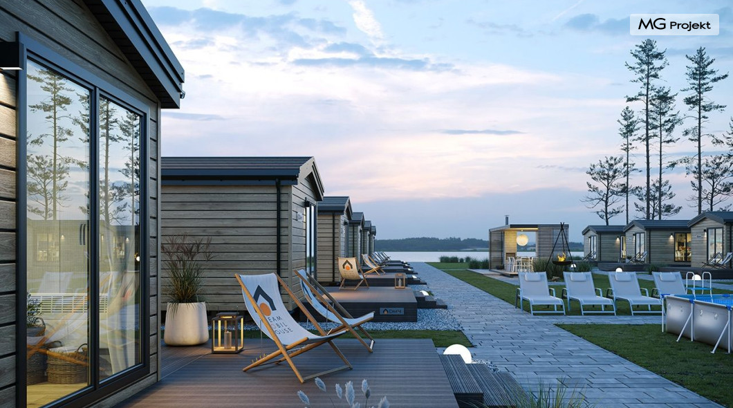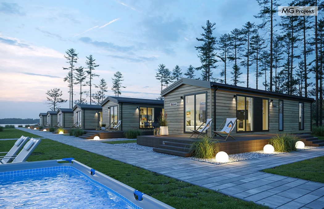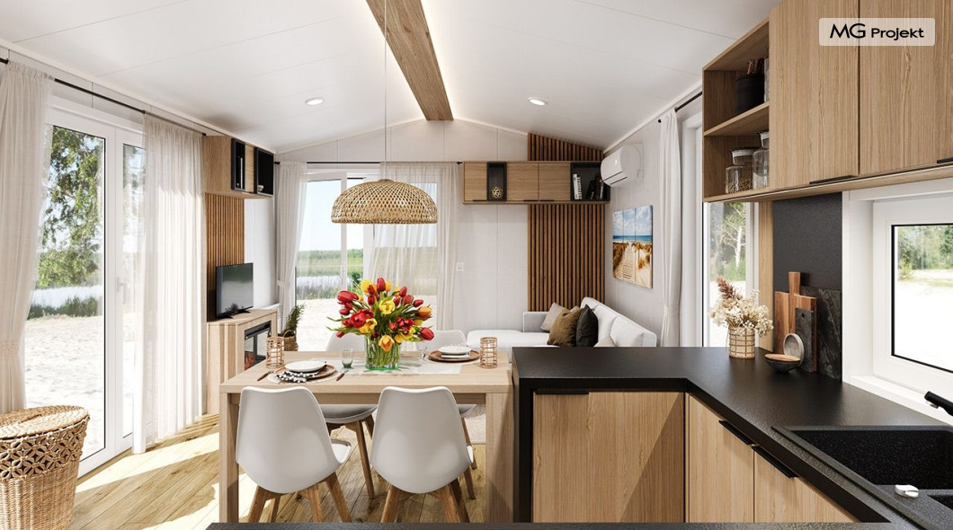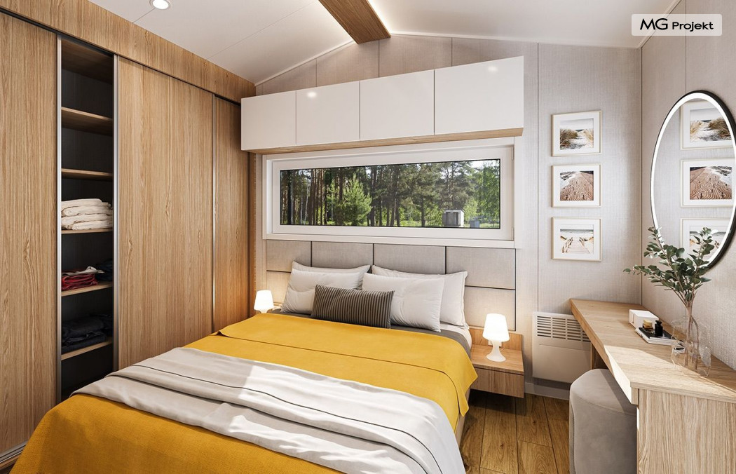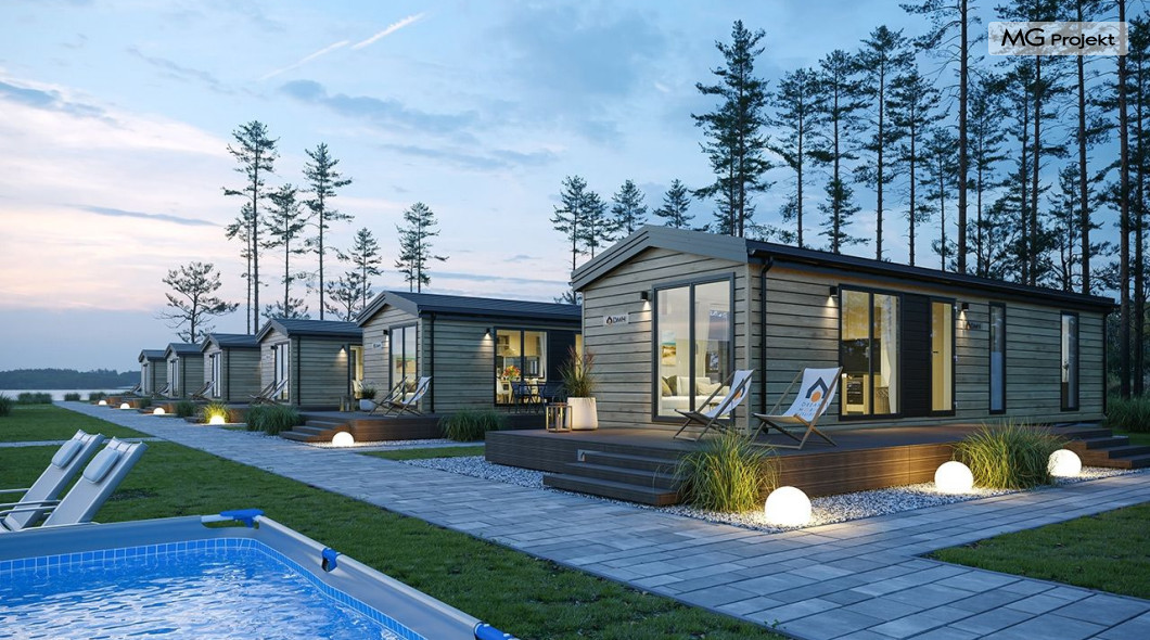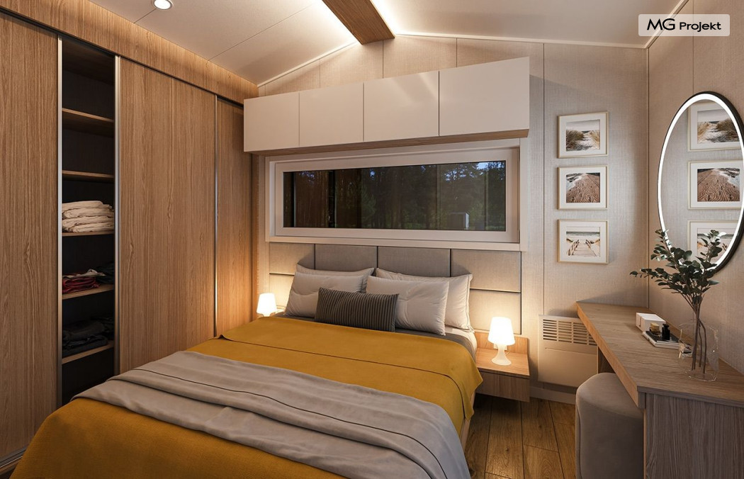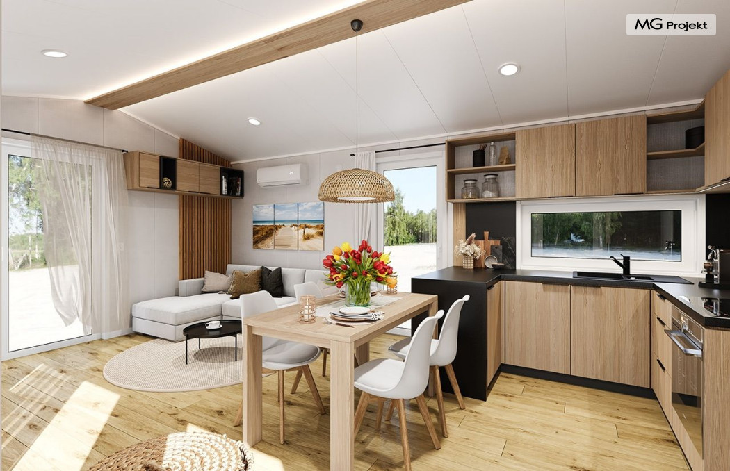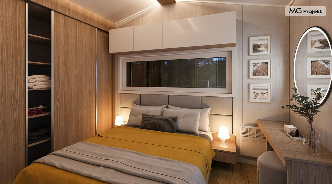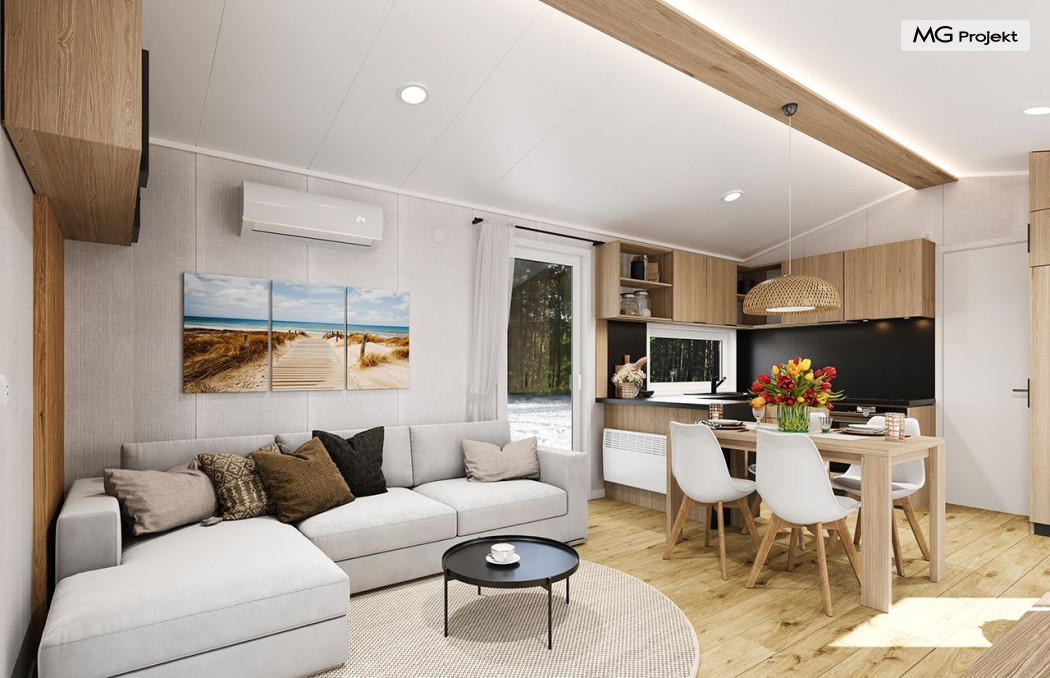 Dom mobilny A o wymiarach zewnętrznych: 12 x 4 m, oraz mniejszym 10,5 x 4 m, występuje w wielu wariantach funkcjonalnych wnętrza oraz wygląd zewnętrzny dostosowany do wymagań klienta