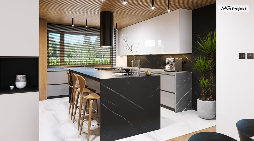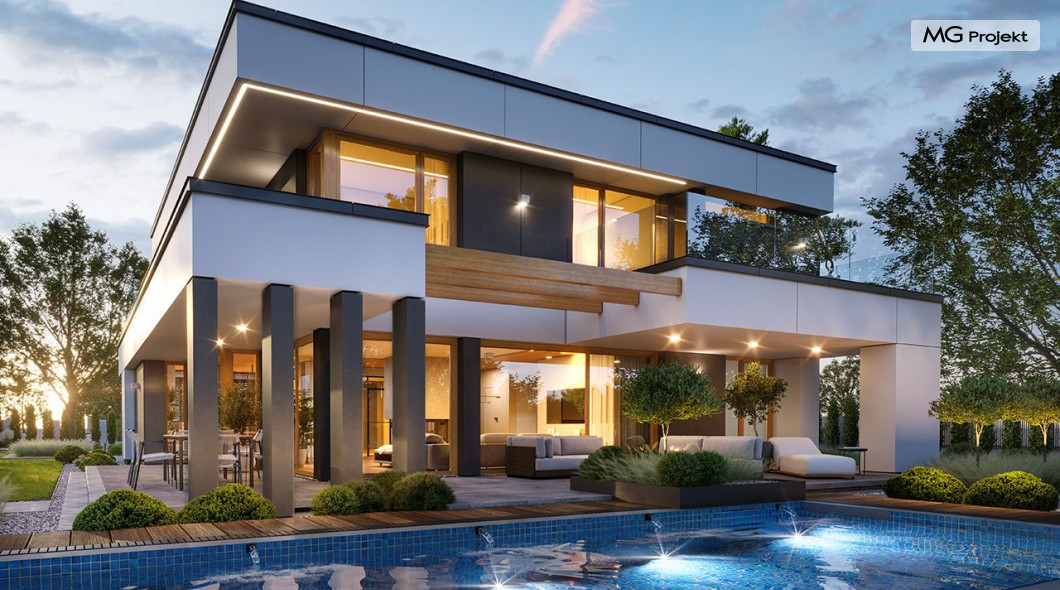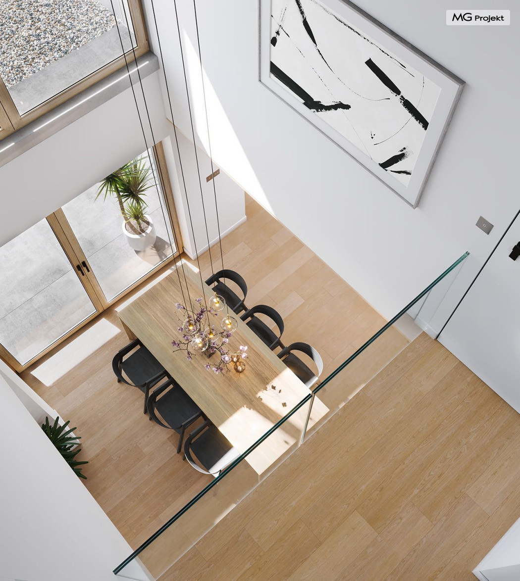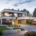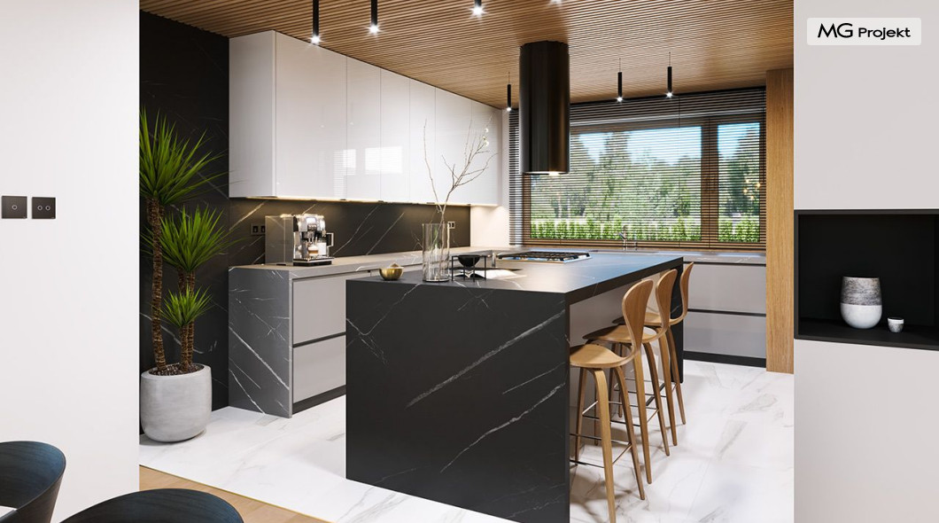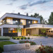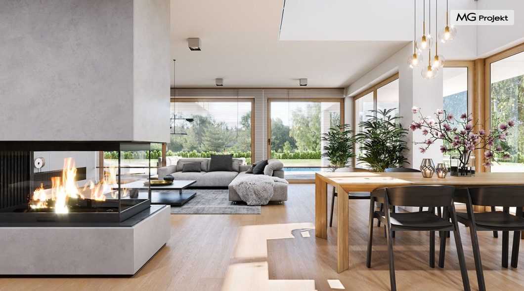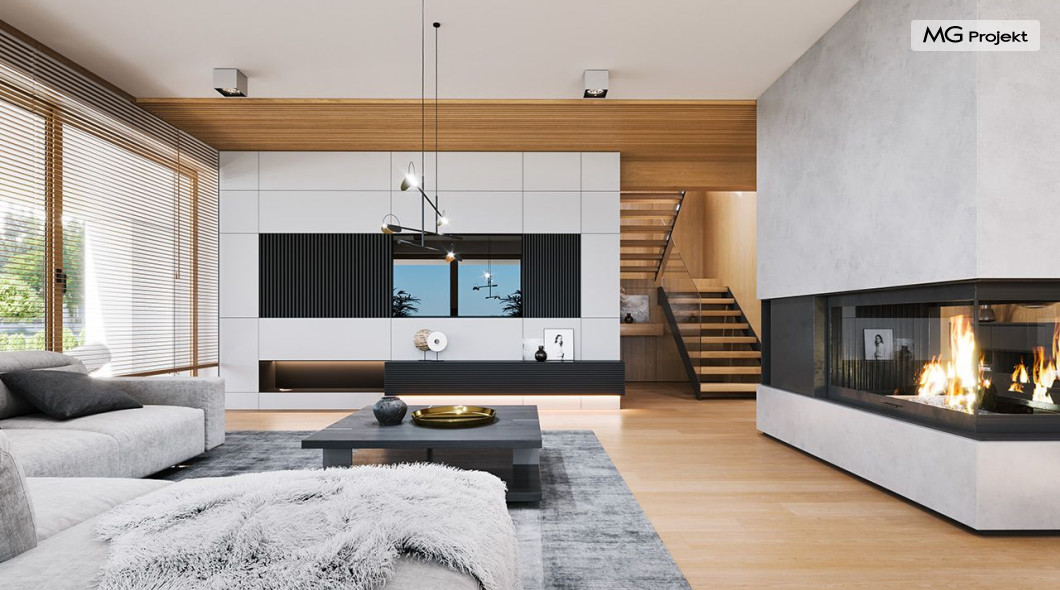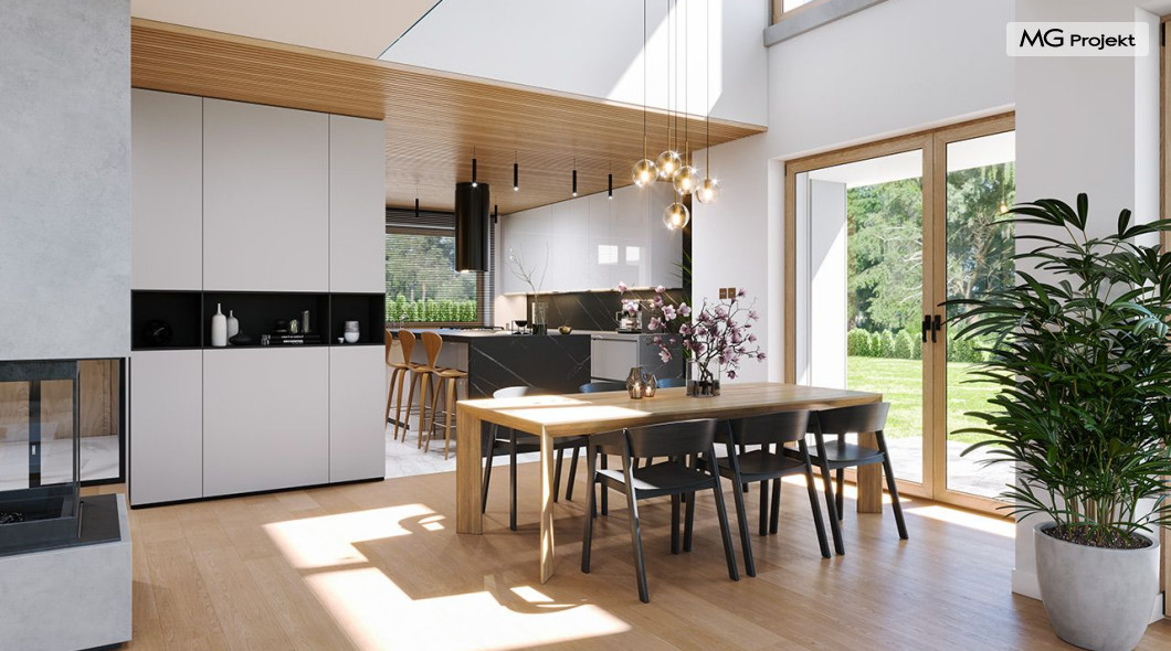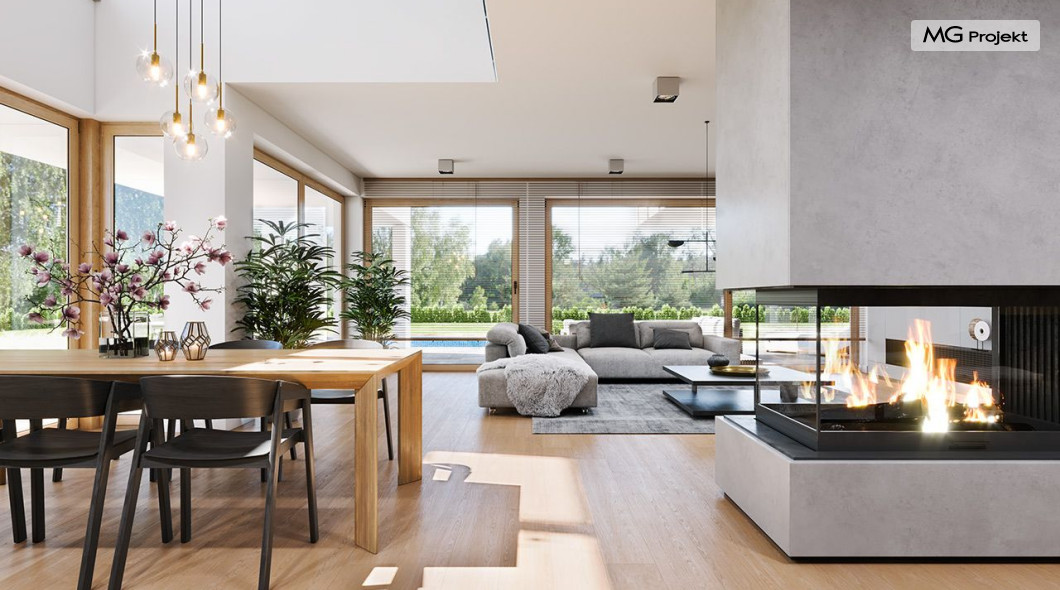 Projekt domu Willa Floryda 8 to kolejny projekt reprezentacyjnego domu piętrowego z serii „Willa Floryda”. Dom został zaprojektowany jako przestronna miejska willa, zbudowana na planie zbliżonym do kwadratu, z wystającą do przodu częścią garażową, dzięki czemu zmieści na węższej parceli - nawet o szerokości 21 metrów. Budynek łączy w sobie zwartą prostopadłościenną bryłę, komfortowe, reprezentacyjne wnętrze, oraz nowoczesną atrakcyjną architekturę z ciekawymi detalami. Willa Floryda 8 jest mniejszym budynkiem od podstawowych wariantów „Floryd”. Ma mniejszą powierzchnię, mniej rozciągnięty rzut, dzięki czemu budynek jest też mniej kosztowny. Układ funkcjonalny domu zbliżony jest do cieszącego się popularnością domu Willa Floryda 3, jednak zaproponowaliśmy tutaj zupełnie inną formę architektoniczną budynku. Podstawowy język detali został zachowany, jak podział fasad na poziome pasy, duże ilości przeszkleń, balkony i tarasy piętra, czy zwieńczenie budynku czterospadowym dachem z szerokim gzymsowaniem. Dodatkowo wprowadziliśmy kolejne architektoniczne smaczki. Przede wszystkim od strony ogrodu dodane zostały piękne zadaszenia części salonu, z przerwą tworzącą półzamknięte wewnętrzne patio, dające mieszkańcom przytulność i intymność. Przedłużenie sufitów parteru w podcieniach okalających tarasy, oraz szerokie przeszklenia między częścią dzienną, a tarasem wywołują efekt zatarcia granicy między wnętrzem domu a przestrzenią na zewnątrz. Wnętrze domu zaaranżowano łącząc poszczególne fragmenty przestrzeni dziennej ze sobą w taki sposób, aby pomieszczenia były duże, a równocześnie przytulne i odpowiednio wyskalowane. Pod względem układu funkcjonalnego wnętrza, dom podzielono na cześć dzienną i techniczno-garażową na parterze, oraz cześć z sypialniami na piętrze. Do budynku wchodzimy szerokim wejściem, z drzwiami z bocznym naświetlem, do wygodnego przedsionka z szatnią. Następnie przechodzimy do otwartego holu, oddzielonego od salonu dwustronnym ozdobnym kominkiem będącym centralnym akcentem całej przestrzeni dziennej. Na część dzienną składają się pomieszczenia salonu – z szeroką ścianą tv i dużym oknem, jadalnia z pustką sufitu i antresolą, oraz obszerna kuchnia z wyspą i spiżarnią. Dodatkowe pomieszczenia parteru to pokój-gabinet, łazienka, oraz garaż z kotłownią. Na piętrze znalazły się 4 sypialnie, w tym apartament master łazienką,garderobą i tarasem, oraz dwie dodatkowe łazienki. Wnętrze można oczywiście dowolnie modelować dostosowując do potrzeb konkretnej rodziny. Budynek zaprojektowano jako energooszczędny, z dobrymi izolacjami i nowoczesnymi instalacjami. Dom łączy w sobie nowoczesny wygląd z prostą konstrukcją i zwartą bryłą, dzięki czemu nie będzie trudny w budowie i powinien być niedrogi w późniejszej eksploatacji. Willa Floryda 8 to propozycja dla Inwestorów planujących budowę wyjątkowego domu dla siebie - wygodnej reprezentacyjnej willi o nowoczesnym stylu. Budynek będzie atrakcyjną oprawą i scenografią codziennego życia, podkreślającą dobry gust jego użytkowników. Dom stawiając Inwestorom wysoko poprzeczkę podczas budowy, odwdzięczy się ciesząc oko i karmiąc codziennie zmysły właścicieli, przyciągając jednocześnie spojrzenia sąsiadów i przechodniów. Willa Floryda 8 do dom dla Inwestorów chcących wyrazić siebie i zaznaczyć swoje przywiązanie do dobrego smaku i jakościowej architektury. Zapraszamy !