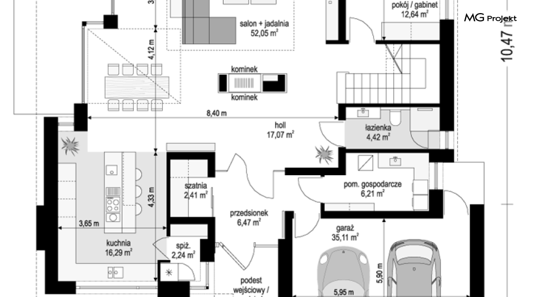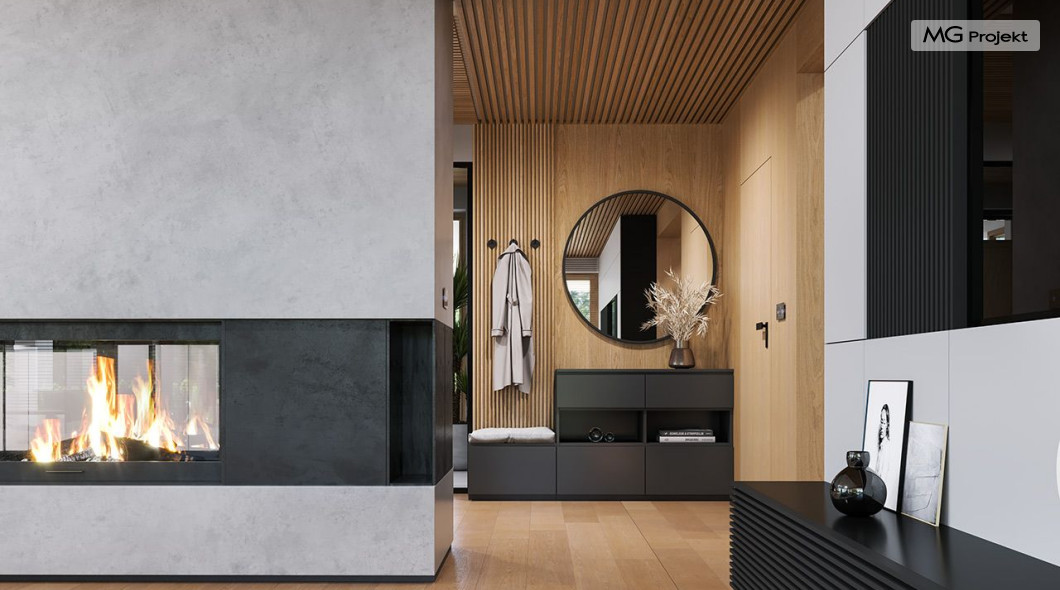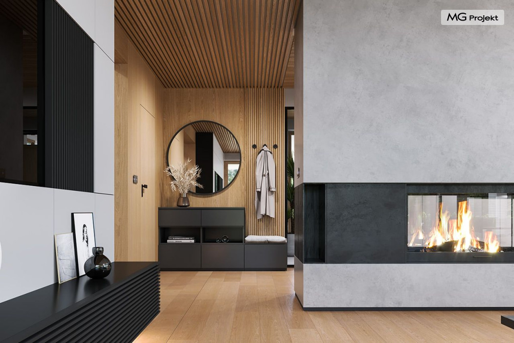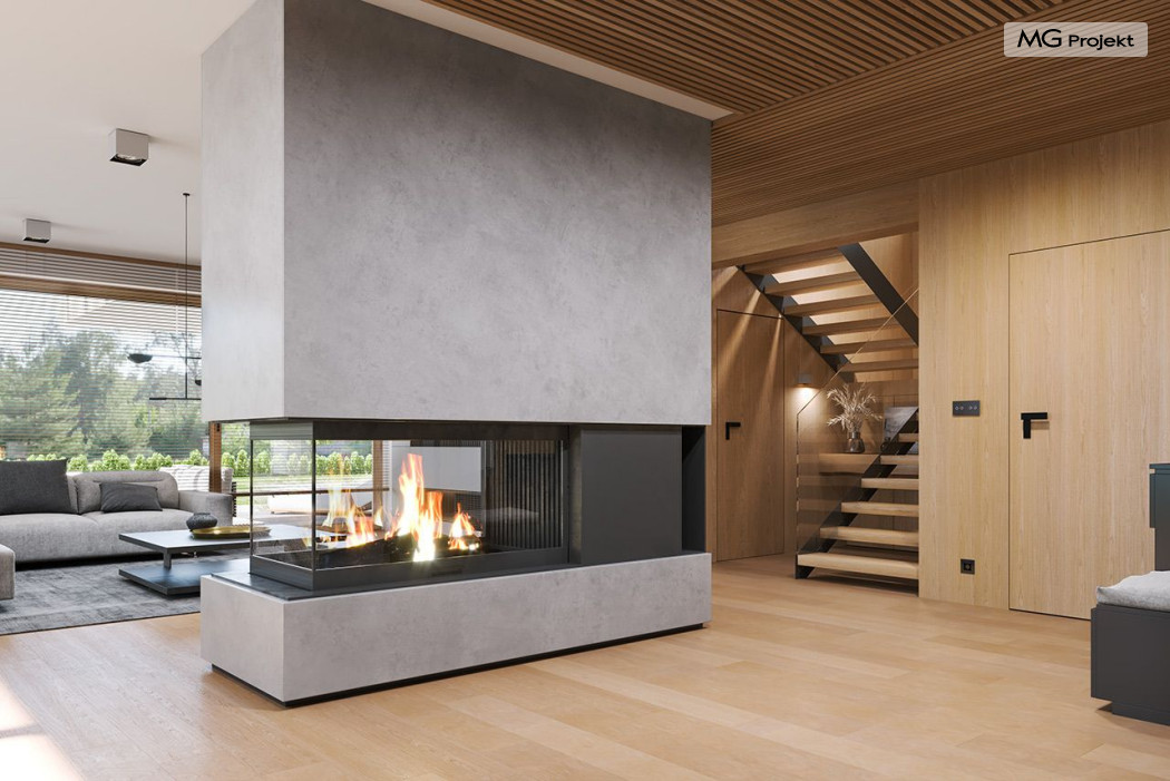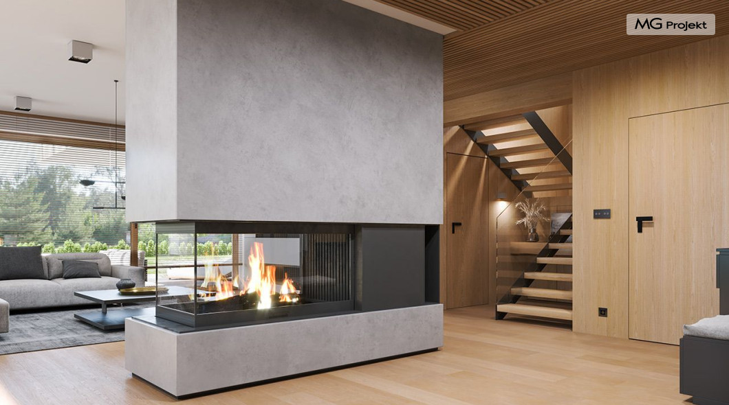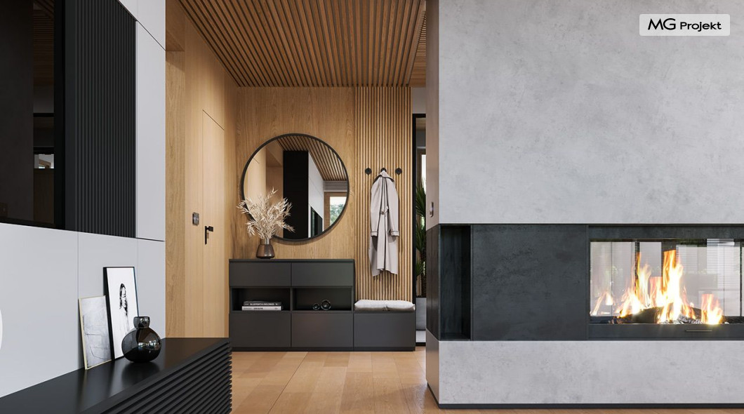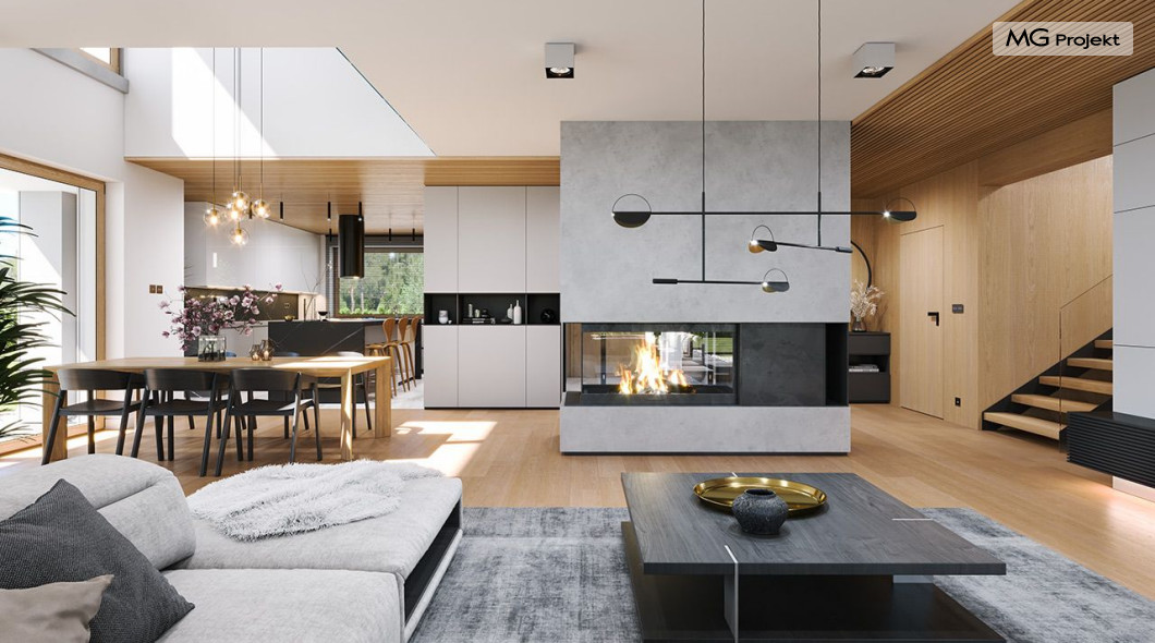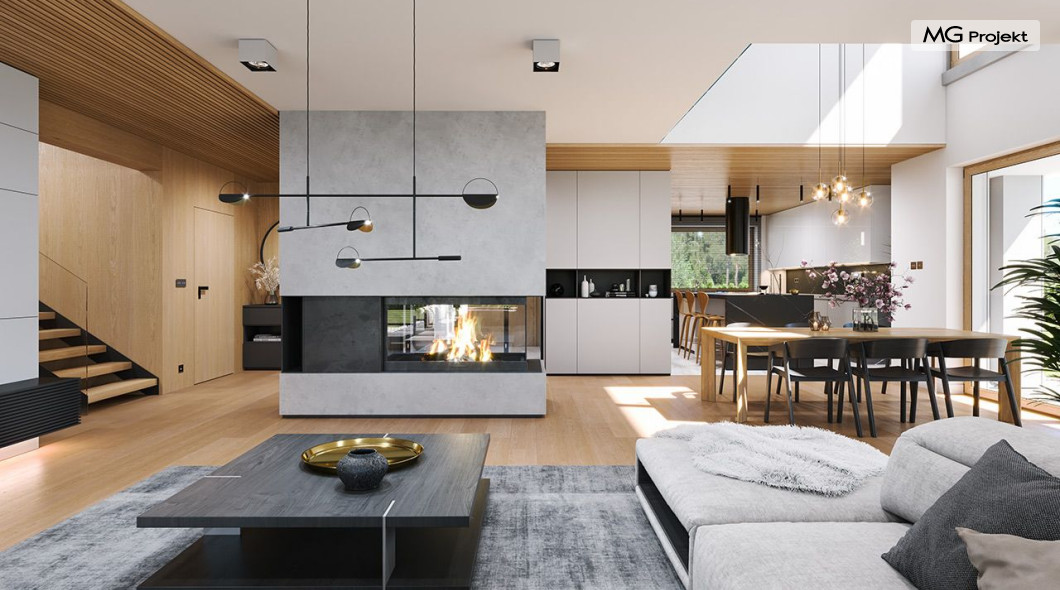 Projekt domu Willa Floryda 8 to kolejny projekt reprezentacyjnego domu piętrowego z serii „Willa Floryda”. Dom został zaprojektowany jako przestronna miejska willa, zbudowana na planie zbliżonym do kwadratu, z wystającą do przodu częścią garażową, dzięki czemu zmieści na węższej parceli - nawet o szerokości 21 metrów. Budynek łączy w sobie zwartą prostopadłościenną bryłę, komfortowe, reprezentacyjne wnętrze, oraz nowoczesną atrakcyjną architekturę z ciekawymi detalami. Willa Floryda 8 jest mniejszym budynkiem od podstawowych wariantów „Floryd”. Ma mniejszą powierzchnię, mniej rozciągnięty rzut, dzięki czemu budynek jest też mniej kosztowny. Układ funkcjonalny domu zbliżony jest do cieszącego się popularnością domu Willa Floryda 3, jednak zaproponowaliśmy tutaj zupełnie inną formę architektoniczną budynku. Podstawowy język detali został zachowany, jak podział fasad na poziome pasy, duże ilości przeszkleń, balkony i tarasy piętra, czy zwieńczenie budynku czterospadowym dachem z szerokim gzymsowaniem. Dodatkowo wprowadziliśmy kolejne architektoniczne smaczki. Przede wszystkim od strony ogrodu dodane zostały piękne zadaszenia części salonu, z przerwą tworzącą półzamknięte wewnętrzne patio, dające mieszkańcom przytulność i intymność. Przedłużenie sufitów parteru w podcieniach okalających tarasy, oraz szerokie przeszklenia między częścią dzienną, a tarasem wywołują efekt zatarcia granicy między wnętrzem domu a przestrzenią na zewnątrz. Wnętrze domu zaaranżowano łącząc poszczególne fragmenty przestrzeni dziennej ze sobą w taki sposób, aby pomieszczenia były duże, a równocześnie przytulne i odpowiednio wyskalowane. Pod względem układu funkcjonalnego wnętrza, dom podzielono na cześć dzienną i techniczno-garażową na parterze, oraz cześć z sypialniami na piętrze. Do budynku wchodzimy szerokim wejściem, z drzwiami z bocznym naświetlem, do wygodnego przedsionka z szatnią. Następnie przechodzimy do otwartego holu, oddzielonego od salonu dwustronnym ozdobnym kominkiem będącym centralnym akcentem całej przestrzeni dziennej. Na część dzienną składają się pomieszczenia salonu – z szeroką ścianą tv i dużym oknem, jadalnia z pustką sufitu i antresolą, oraz obszerna kuchnia z wyspą i spiżarnią. Dodatkowe pomieszczenia parteru to pokój-gabinet, łazienka, oraz garaż z kotłownią. Na piętrze znalazły się 4 sypialnie, w tym apartament master łazienką,garderobą i tarasem, oraz dwie dodatkowe łazienki. Wnętrze można oczywiście dowolnie modelować dostosowując do potrzeb konkretnej rodziny. Budynek zaprojektowano jako energooszczędny, z dobrymi izolacjami i nowoczesnymi instalacjami. Dom łączy w sobie nowoczesny wygląd z prostą konstrukcją i zwartą bryłą, dzięki czemu nie będzie trudny w budowie i powinien być niedrogi w późniejszej eksploatacji. Willa Floryda 8 to propozycja dla Inwestorów planujących budowę wyjątkowego domu dla siebie - wygodnej reprezentacyjnej willi o nowoczesnym stylu. Budynek będzie atrakcyjną oprawą i scenografią codziennego życia, podkreślającą dobry gust jego użytkowników. Dom stawiając Inwestorom wysoko poprzeczkę podczas budowy, odwdzięczy się ciesząc oko i karmiąc codziennie zmysły właścicieli, przyciągając jednocześnie spojrzenia sąsiadów i przechodniów. Willa Floryda 8 do dom dla Inwestorów chcących wyrazić siebie i zaznaczyć swoje przywiązanie do dobrego smaku i jakościowej architektury. Zapraszamy !