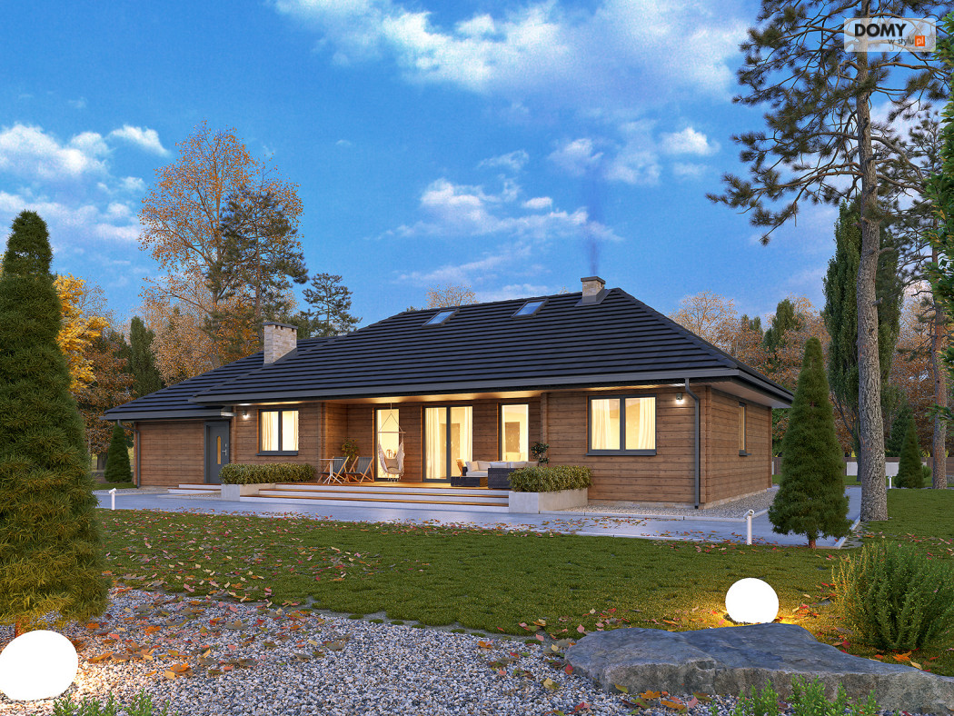 Borówka 7 to dom parterowy rozplanowany na symetrycznym rzucie, do którego dodano garaż na dwa samochody. Konstrukcja została wykonana z drewna, a elewacja z bali. Dach wielospadowy został przykryty ciemną dachówką ceramiczną. Na parterze znajdują się: wiatrołap, garderoba, wc, łazienka, 3 sypialnie, pokój dzienny z jadalnią, kuchnia, garaż z kotłownią.