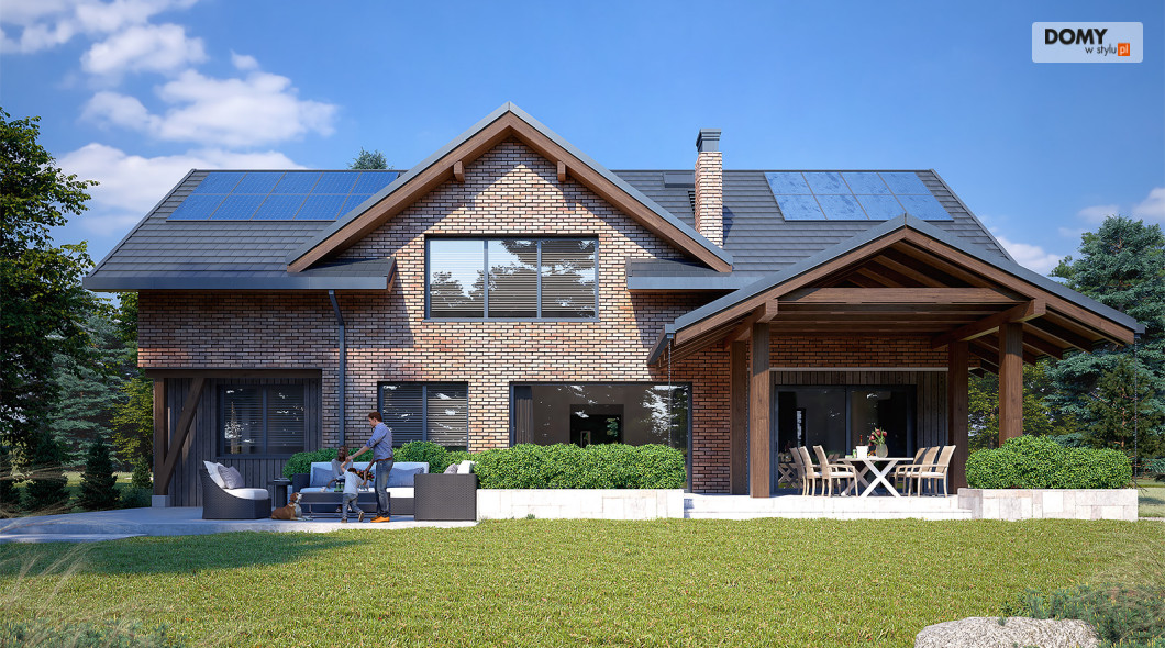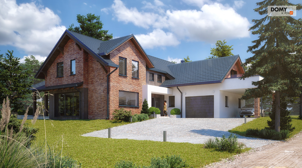 Anyż to nowoczesny projekt domu z poddaszem i jednostanowiskowym garażem. 3Przewidziano tu powierzchnię użytkową 268 m2. 3Projekt posiada ciekawą elewację wykończoną białym tynkiem, drewnianą szalówką i płytkami elewacyjnymi. 3Na parterze zaprojektowano salon, jadalnię oraz kuchnię ze spiżarnią. 3Układ funkcjonalny parteru dopełnia gabinet oraz liczne pomieszczenia użytkowe. 3Na poddaszu znalazły się trzy sypialnie.3 Każda z nich posiada prywatną garderobę. 3Mieszkańcy do dyspozycji mają tu również rodzinną łazienkę oraz pomieszczenie do adaptacji wg własnego uznania.